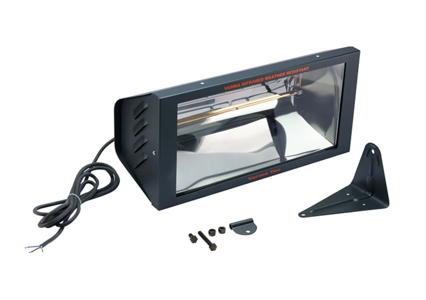 High-output 2kW heater with protective ceramic glass front ideal for use in areas subject to moisture, splashing, dust and manufacturing processes including wet machining. Long-life gold element and a large parabolic reflector produce an excellent heat output, with an even heat distribution over a large area. Adjustable tilt & swivel mounting bracket.